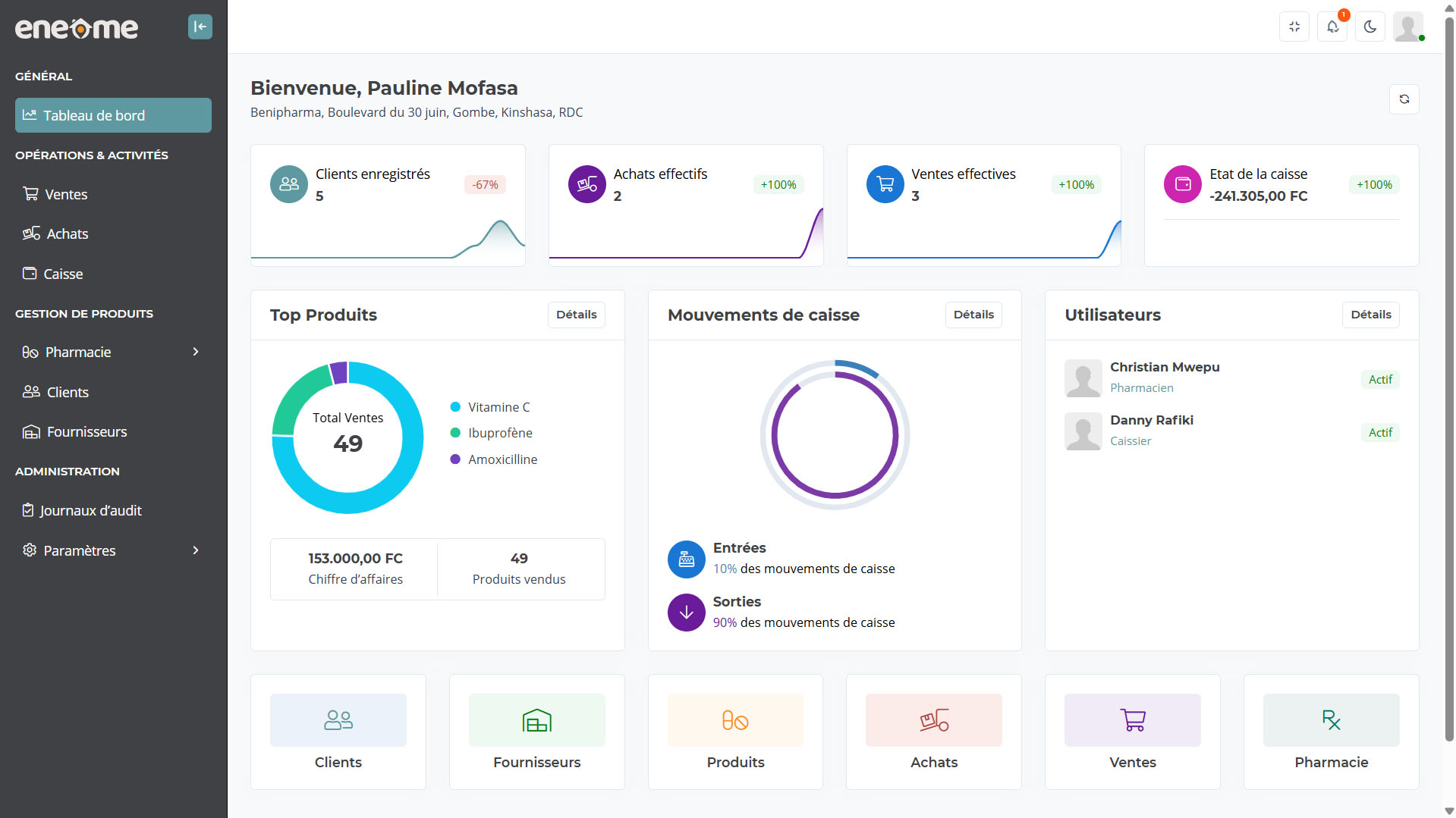 Gagnez du temps, réduisez les erreurs et améliorez vos performances grâce à une plateforme intuitive pensée spécialement pour les pharmacies africaines.